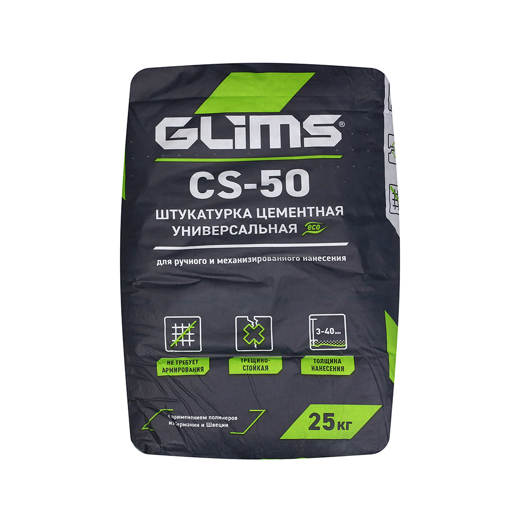 If it is necessary to achieve a perfectly smooth surface after applying the GLIMS®CS-50 plaster, it is recommended to use GLIMS®Finish-F or GLIMS®Finish-R finish cement filler or GLIMS®Stukko-RF cement standard filler.